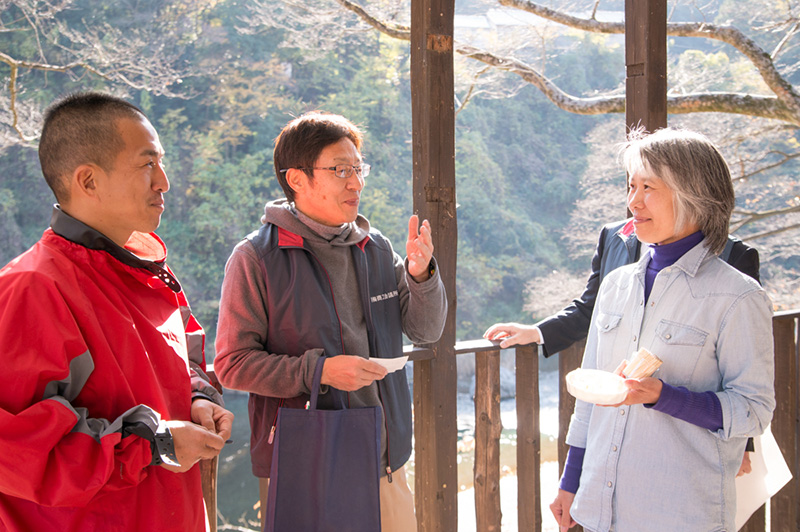 また、御岳山の観光名物のひとつ「澤乃井」の酒蔵の見学も行いました。多摩川の清き水からつくられた「澤乃井」の美味しい日本酒を頂き、みなさま、ほろ酔い気分で、笑顔に包まれた会となりました。