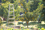 ゆずの木には、靴底を突き抜けてしまうほどの鋭いトゲがあり、収穫の際は、トゲに注意をして収穫を行います。