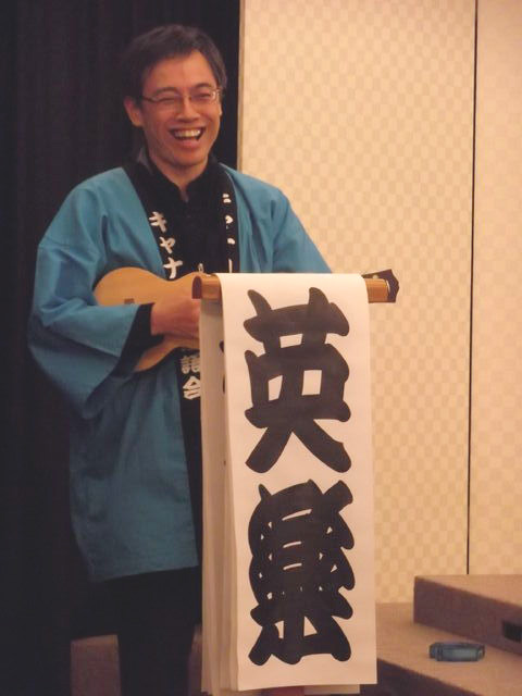 영어만담의 매력은, 무엇보다도 외국인 관객에게도, 일본특유의 유모어 「만담」의 즐거움을 느낄 수 있게 할 수 있다는 점. 만담의 재미란 「말로써의 표현 뿐만이 아닌, 그 사람의 표현력, 재미,인간성이 포함되어 있습니다. 만듬이라는 건 인생 그 자체인 것이죠」라고 만담에 대한 정열을 얘기하는 영락씨의 눈동자는 온화하고 깊었다.